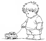 That day, the walk to the field where the other children usually played felt longer than usual. The light green truck felt heavy as he pulled it with a plastic string.